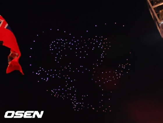 평창 드론 오륜기 (2018년)도쿄 나무(57년전 일본 선수들이 가져온 나무로 만듬)오륜기.